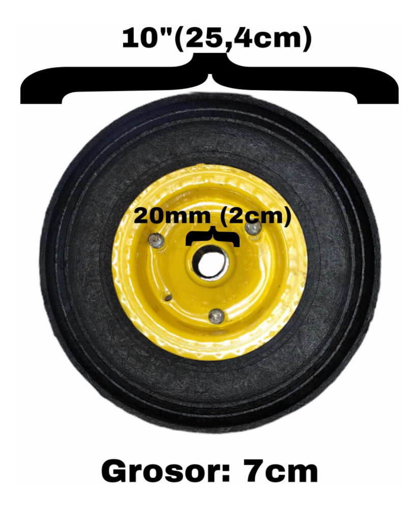 Rueda 100% maciza de 10plg de diámetro.